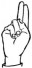 На ћирилици написано БОГДАН БАДРИЋ састоји се из 12 слова [?]. Исписано ћириличном једноручном азбуком за глувонеме: